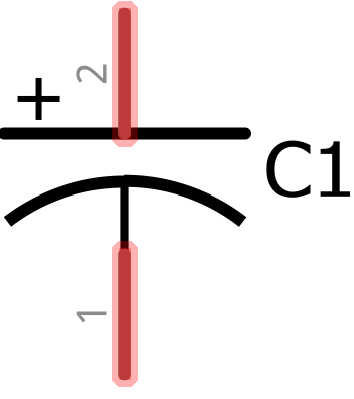 Bei ElKos ist Vorsicht geboten - baut man sie entgegen ihrer Polung ein, können sie platzen! Die Polung erkennt man an der unterschiedlichen Beinlänge und der Markierung auf dem Gehäuse: Die markierte Seite mit dem kurzen Bein ist der negative Pol, das längere Bein ohne Markierung der positive Pol. Wird der ElKo eingebaut, liegt die höhere Spannung am positiven Pol an.
