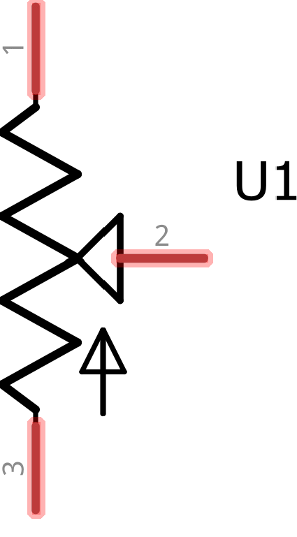 | Steckbrett Symbol - Das mittlere Bein des Potentiometers ist der Abnehmer am Drehregler. | Schaltplan Symbol - Der Abnehmer des Potentiometers wird durch den Pfeil rechts symbolisiert. |