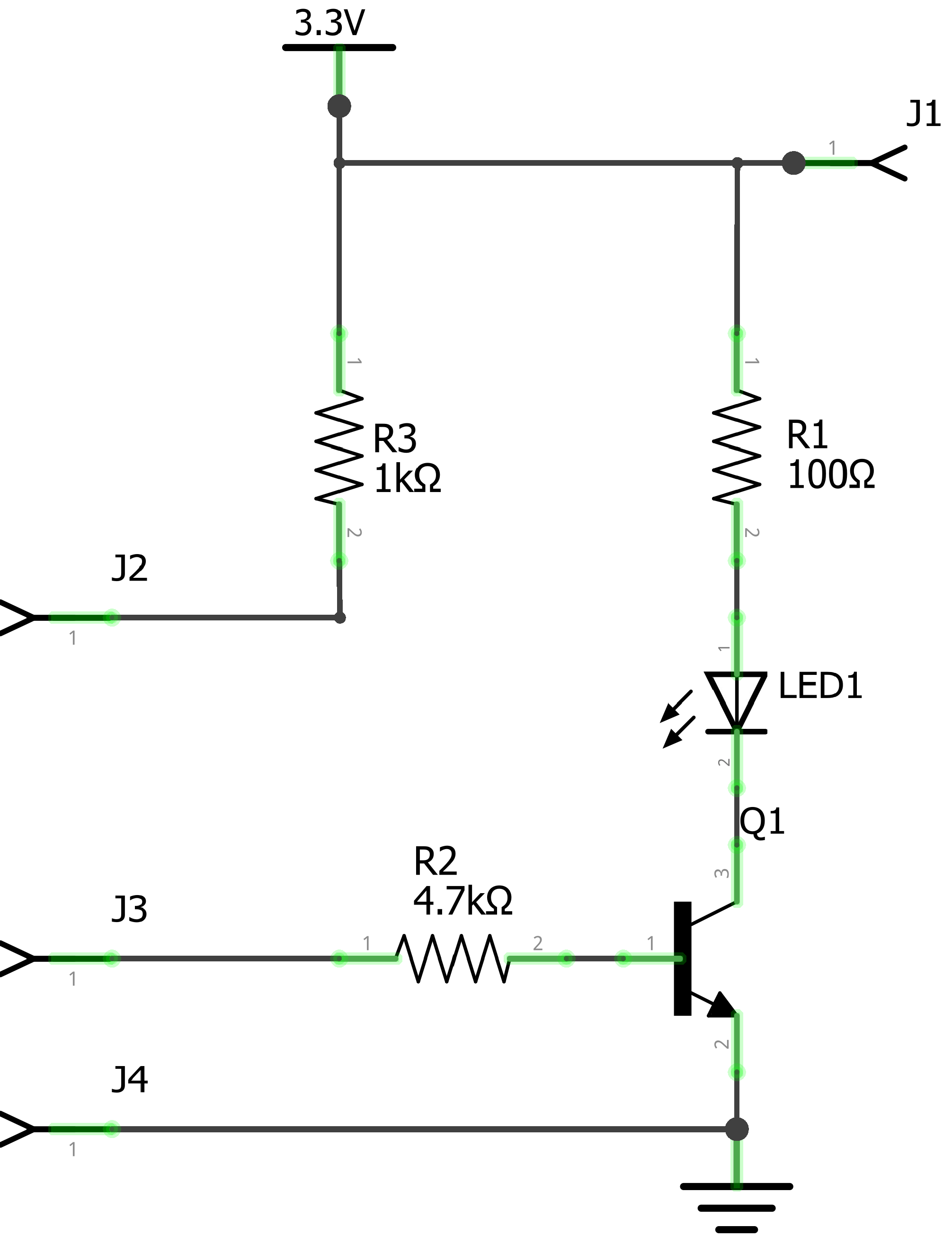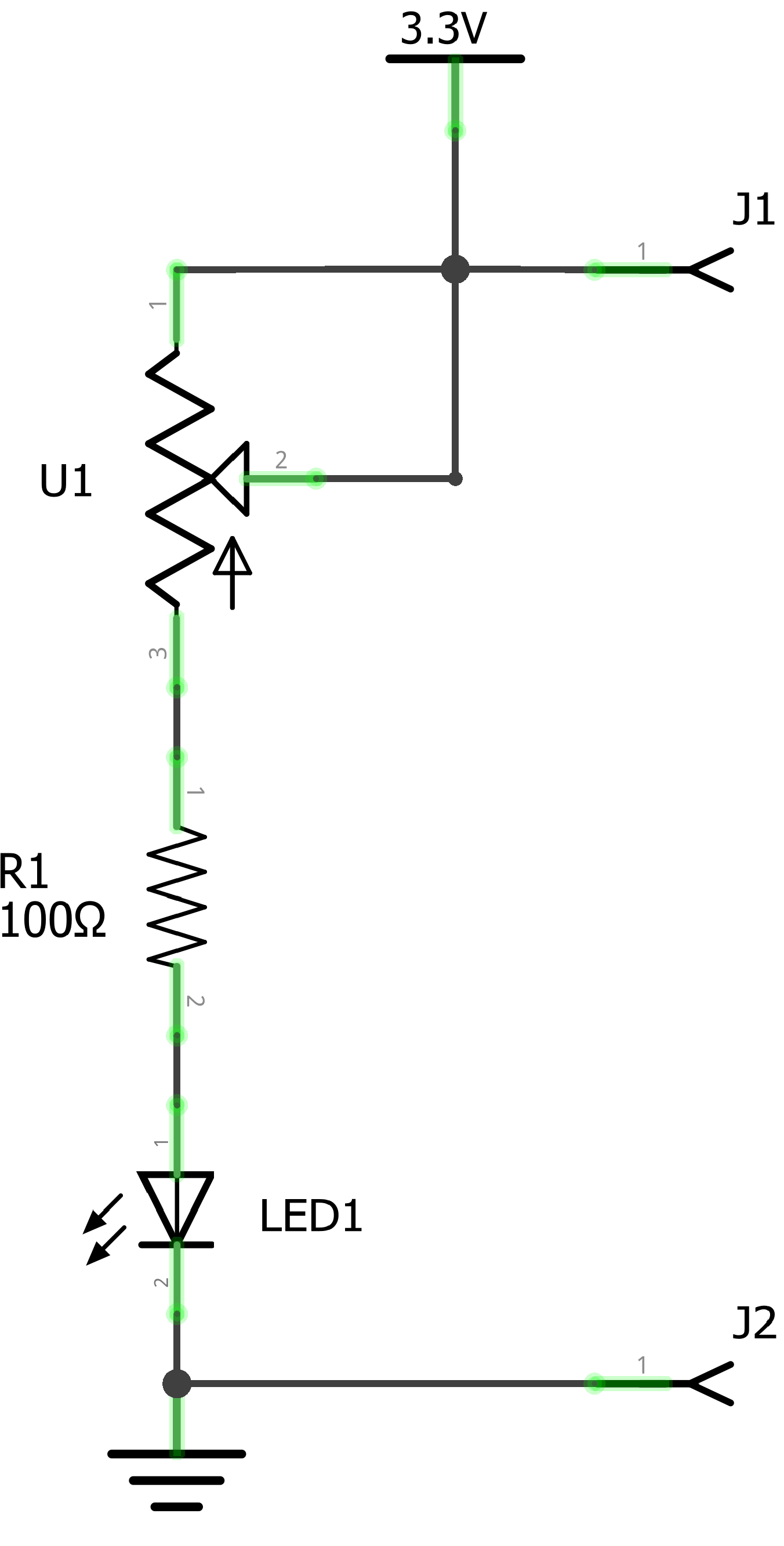 Um die LED zu schützen, wird ein konstanter Widerstand (R1) ergänzt.