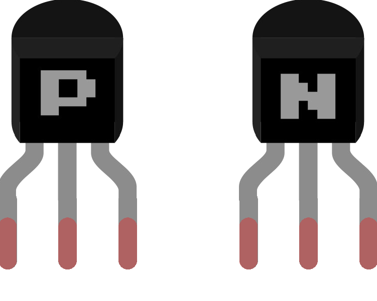Es gibt zwei Transistor Typen, "pnp" und "npn". Sie unterscheiden sich in ihren Polaritäten. In dem Versuch zum Heißen Draht werden beide Transistoren verwendet.